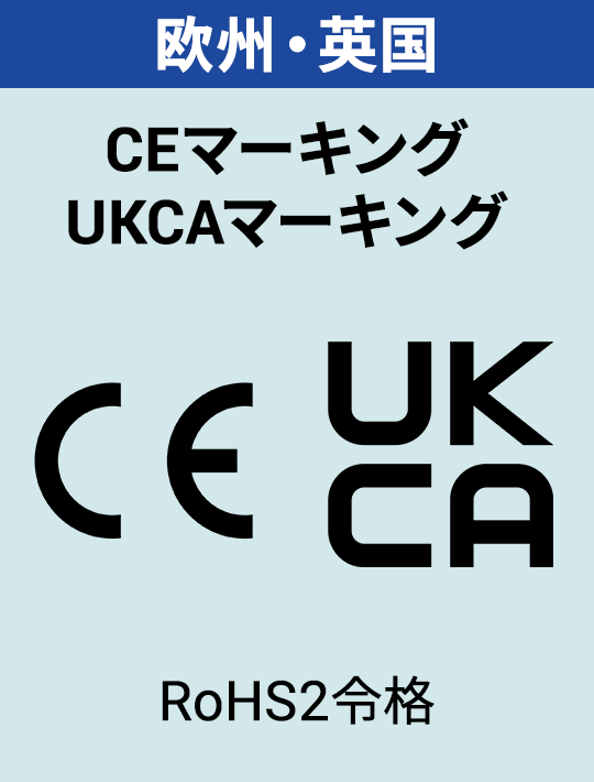 - UKCA / CE:英国UKCA欧州CE(製品として)